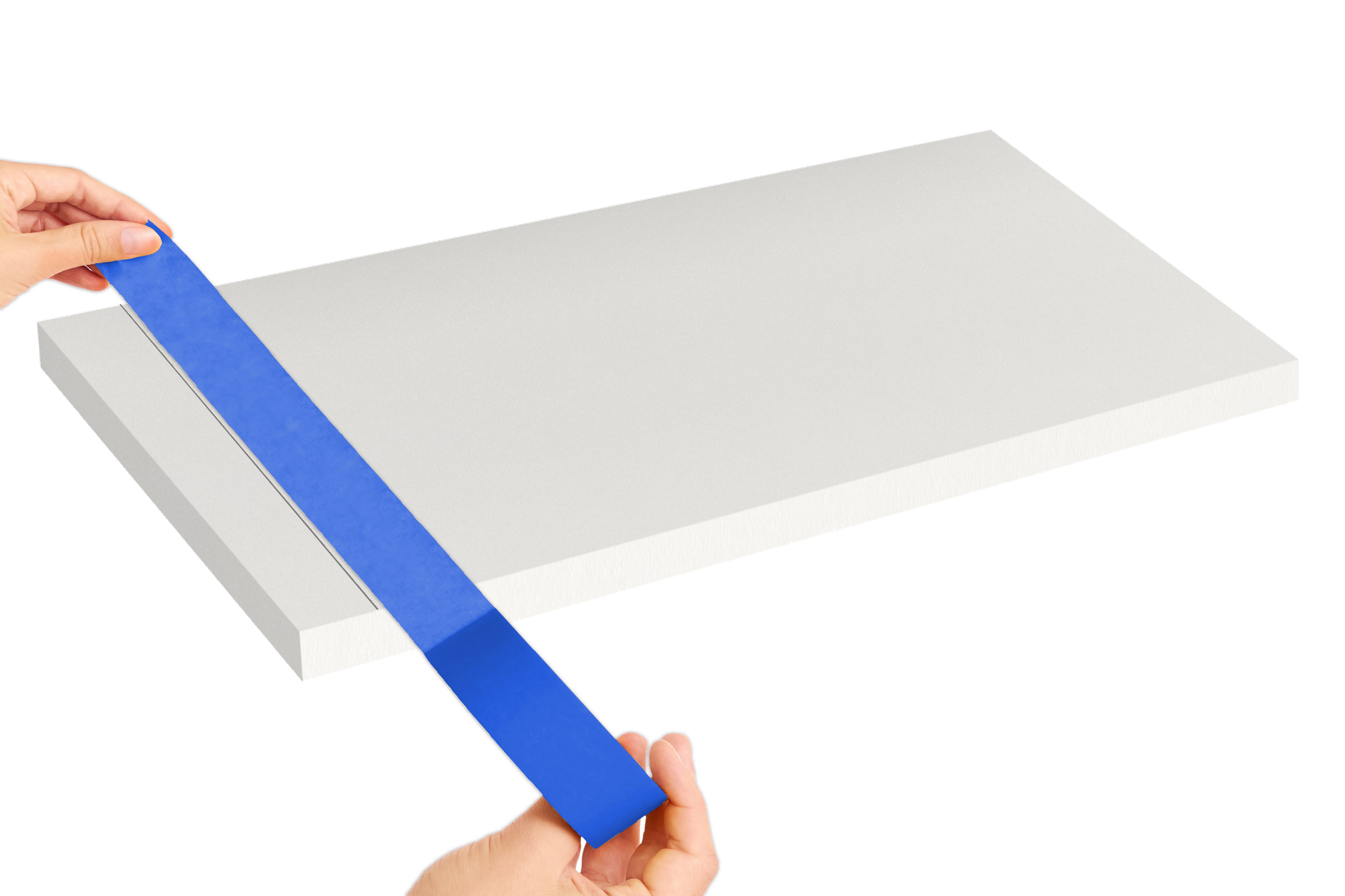 Next, prepare the shelf by marking the length and placing a strip of thick tape where you will make the cut. This will help prevent chipping or cracking.